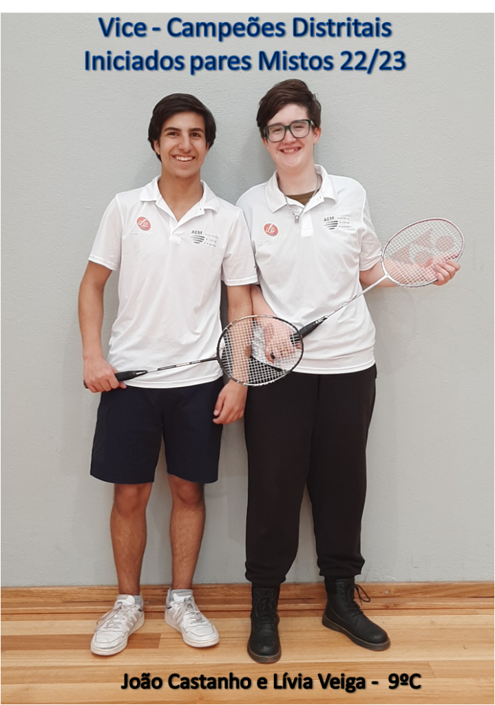 E da conquista do titulo de Vice-campeões distritais de pares mistos por parte dos alunos/atletas do 9ºC Lívia Veiga e João Castanho.