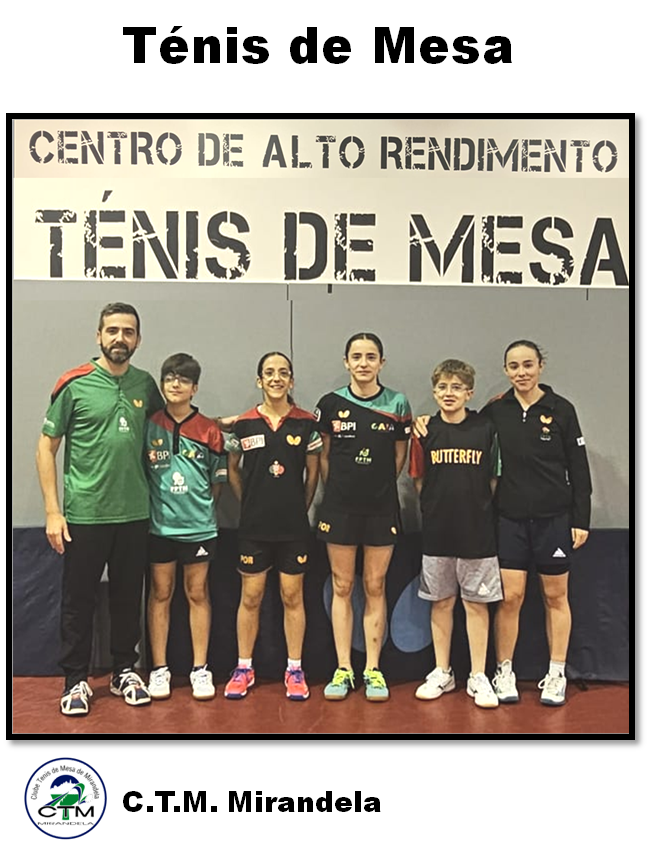 Os Atletas/Alunos do AEM, Rodrigo Lourenço 6ºB, Gabriela Pina 7ºB, Maria Ruivo 8ºG, João Seramota 7ºG e Mariana Santa Comba 12ºA, do CTM Mirandela, foram convocados pela Federação Portuguesa de Ténis de Mesa a participar de 14 a 21 de dezembro no Estágio de Natal realizado no Centro de Alto Rendimento de Vila Nova de Gaia.