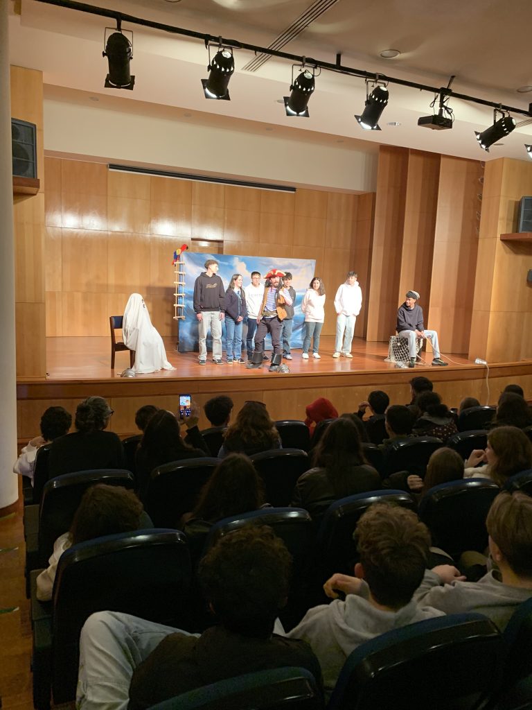 O ponto alto da visita foi a exibição da peça de teatro A Fisherman’s Tale, organizada pela Expolingua Portugal 2025 e encenada pela companhia de teatro Interacting Theatre Company. A peça, totalmente em inglês, foi concebida especialmente para estudantes, proporcionando uma aprendizagem interativa e imersiva. Durante a sessão, alguns alunos foram convidados a subir ao palco e a participar na encenação, o que aumentou o seu envolvimento e confiança na expressão oral em inglês.